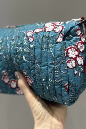Teal and Burgundy Floral Design Cotton Toiletry Bag