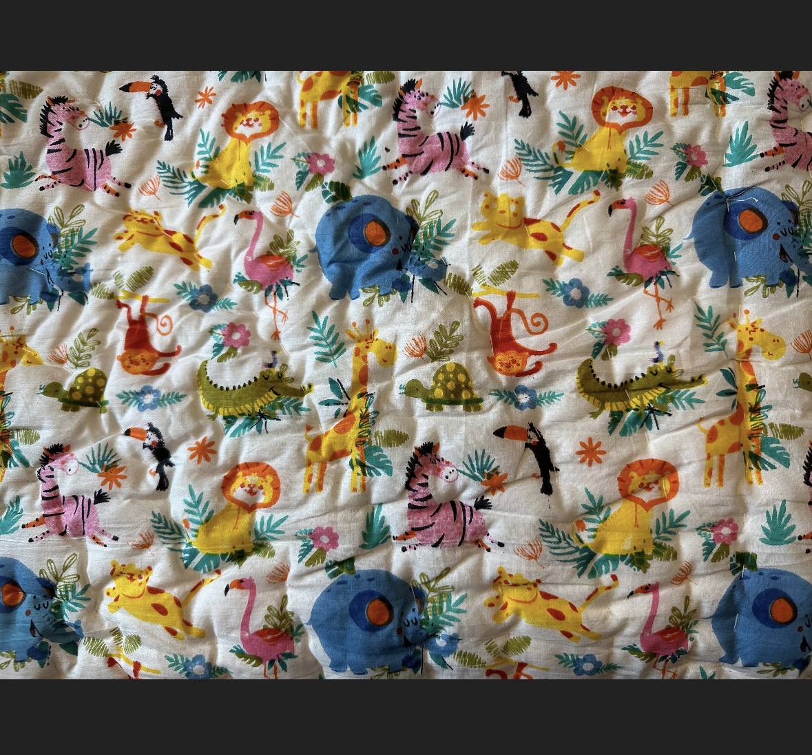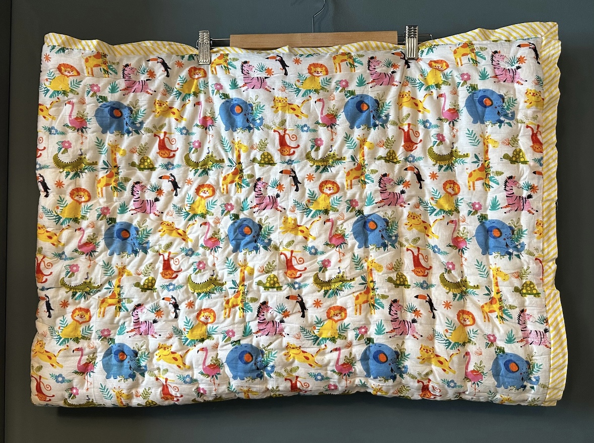 Beautiful soft cotton quilt/blanket with a jungle animal design.