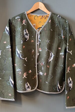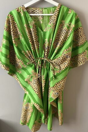 Green Stripe Tiger Design Indian Cotton Summer Kaftan
