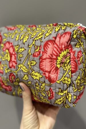 Grey and Pink Floral Design Cotton Toiletry Bag
