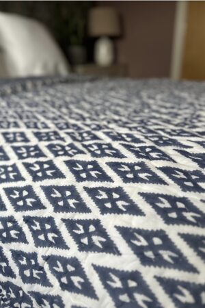 Dark Blue and White Block Printed Reversible Cotton Quilt Double Size