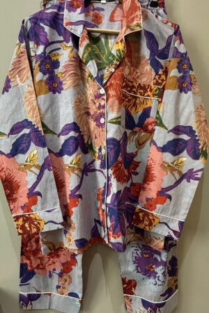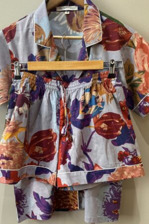 Blue and Pink Floral Ladies Cotton Pyjama Set