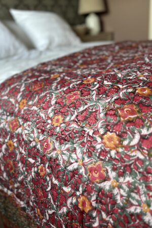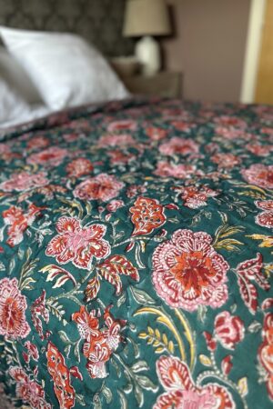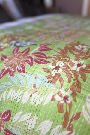 Green Jungle Design Cotton Kantha Stitch Quilt King Size